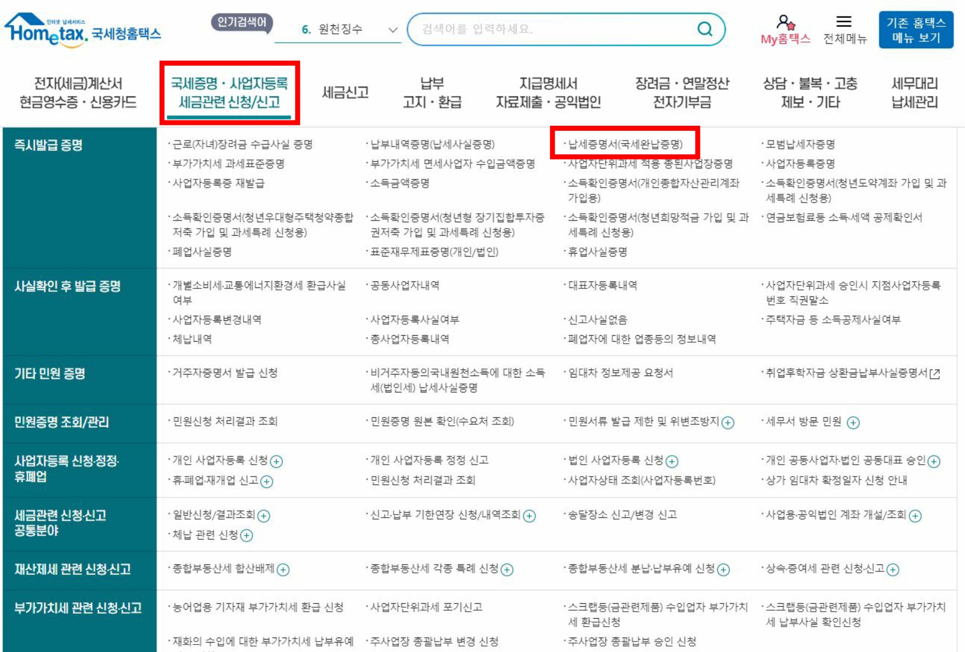 국세완납증명서 발급 절차