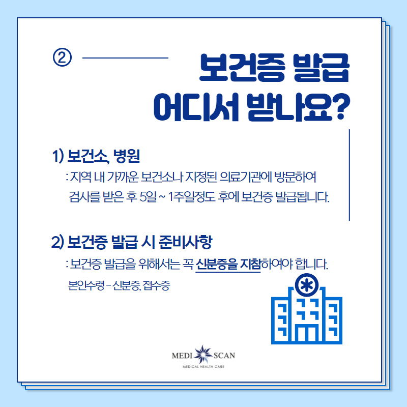 보건증은 식품을 다루거나 요식업 관련 업종에서 종사하는 사람들에게 필수적인 인증서입니다. 이 인증서는 전염성 질병이 없다는 것을 증명하여 소비자에게 안전한 식품을 제공하기 위해 사용됩니다. 보건증은 1년에 한 번씩 재발급을 받아야 하며, 식품 관련 업무를 수행하기 위해 제출되어야 합니다. 보건증이 없으면 식품을 다루는 일을 할 수 없으므로, 이 인증서는 매우 중요한 역할을 합니다.