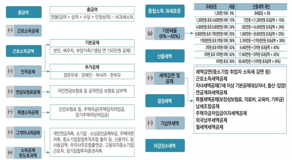 | 4단계 | 과세표준 산출 | 근로소득금액 - 소득공제 |