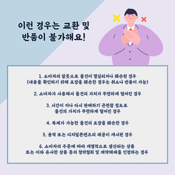 인터넷쇼핑몰에서도 환불이 불가능한 경우가 있습니다. 사용으로 인한 상품 가치 하락, 포장 훼손, 주문제작 상품 등이 이에 해당합니다. 구매 전 반드시 환불 불가 사유를 확인하시기 바랍니다.