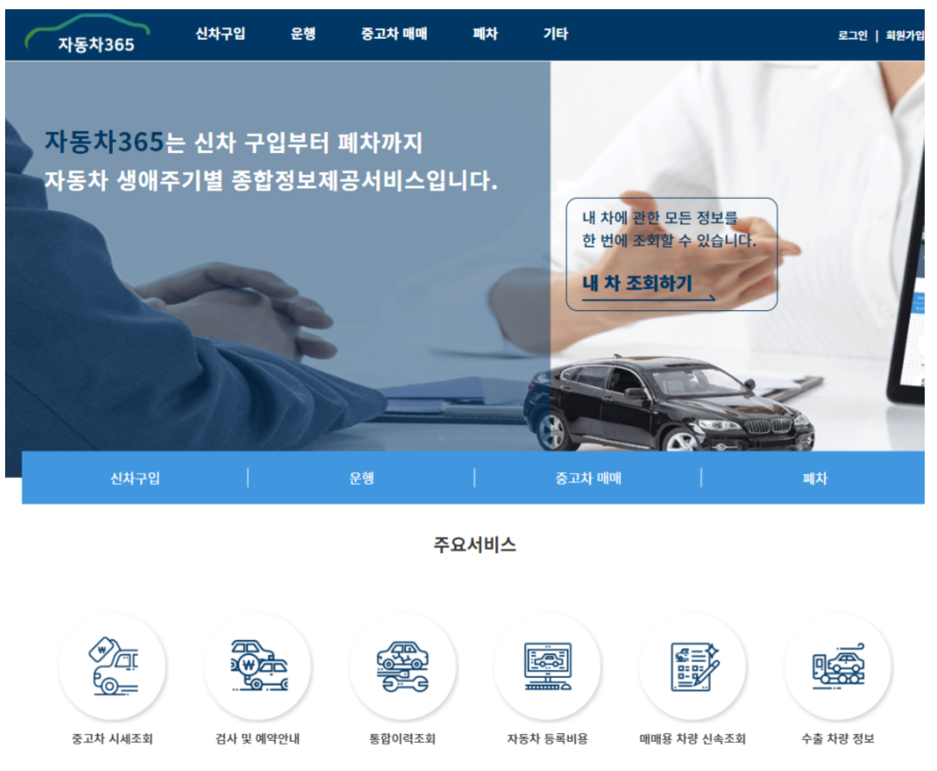 자동차365은 자동차 생애주기별 종합정보제공서비스를 제공하여 운전자들이 자신의 차에 대한 모든 정보를 한 곳에서 확인할 수 있는 플랫폼입니다.