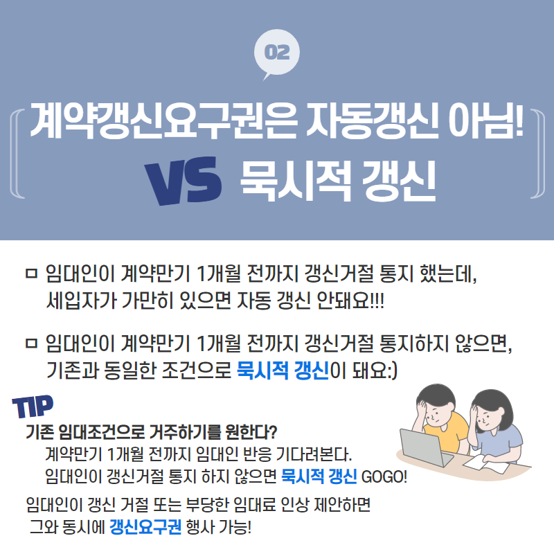 - 임대인이 회신하지 않거나 거부 의사를 밝히지 않으면 자동으로 갱신된 것으로 간주됩니다.