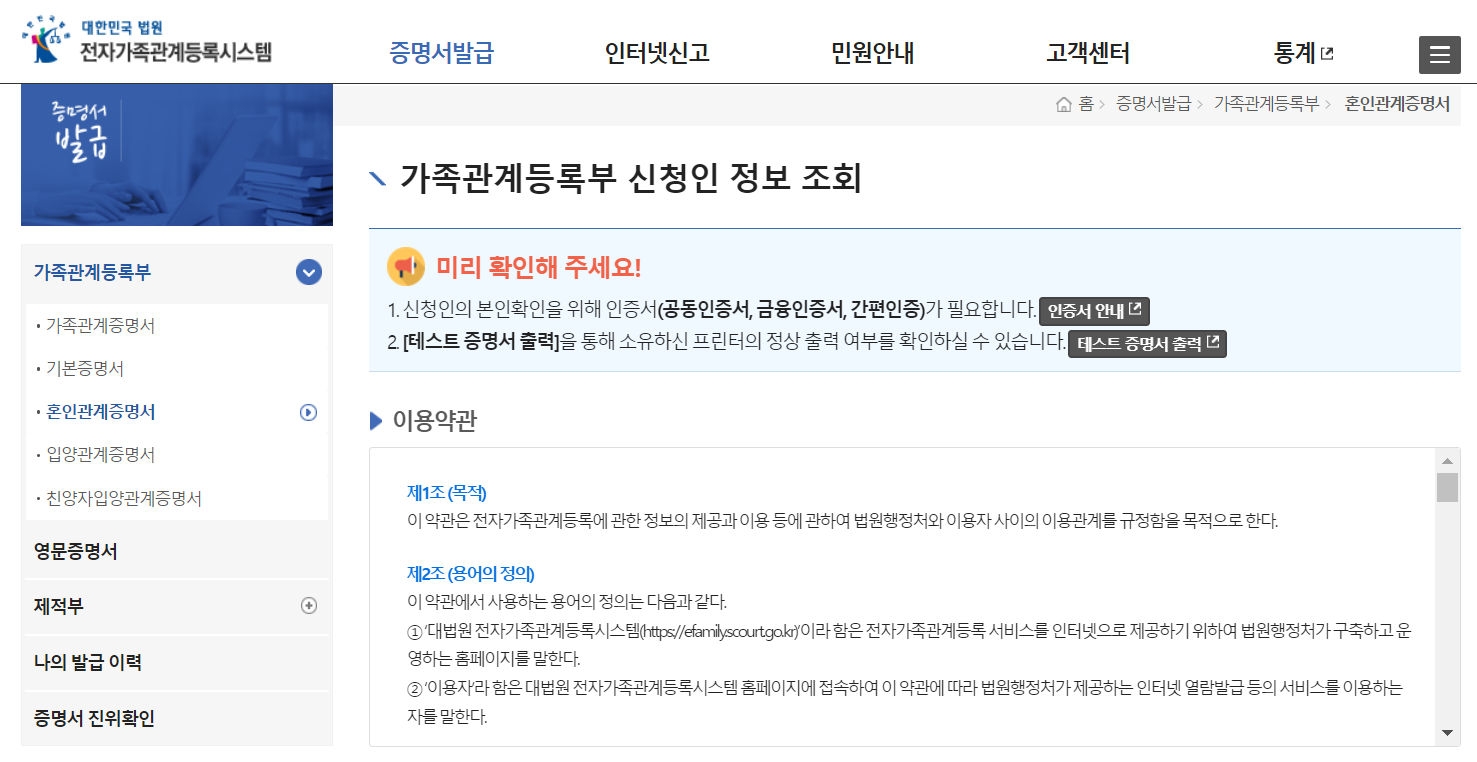 대한민국 법원 전자가족관계등록 시스템 홈페이지에서 혼인관계증명서를 바로 열람하고 발급받을 수 있습니다. 이는 인터넷을 통해 간편하게 진행할 수 있으며, 본인 인증만 완료하면 발급받을 수 있습니다. 다음은 간단한 발급 방법입니다.