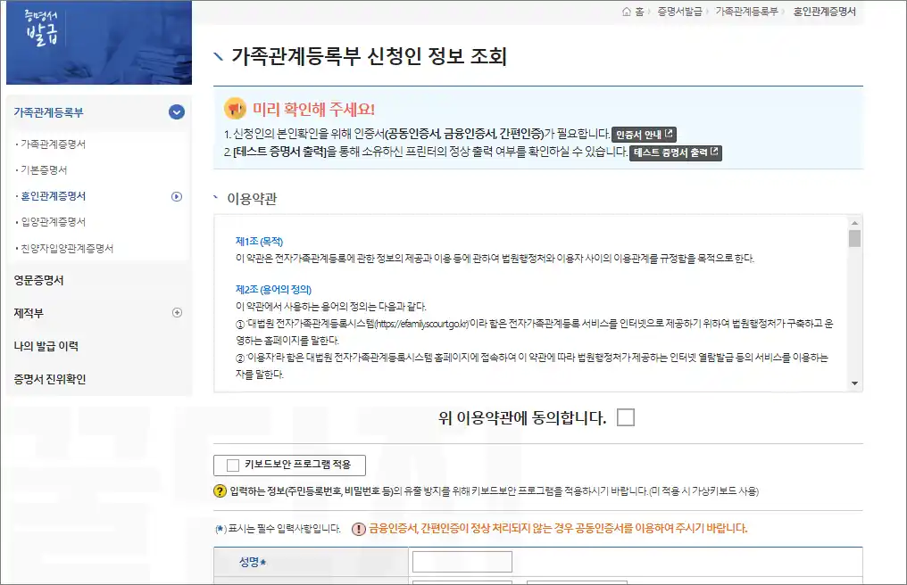 용도: 상속등기, 협의이혼, 소송이혼, 금융상품 신청, 청약 신청 등