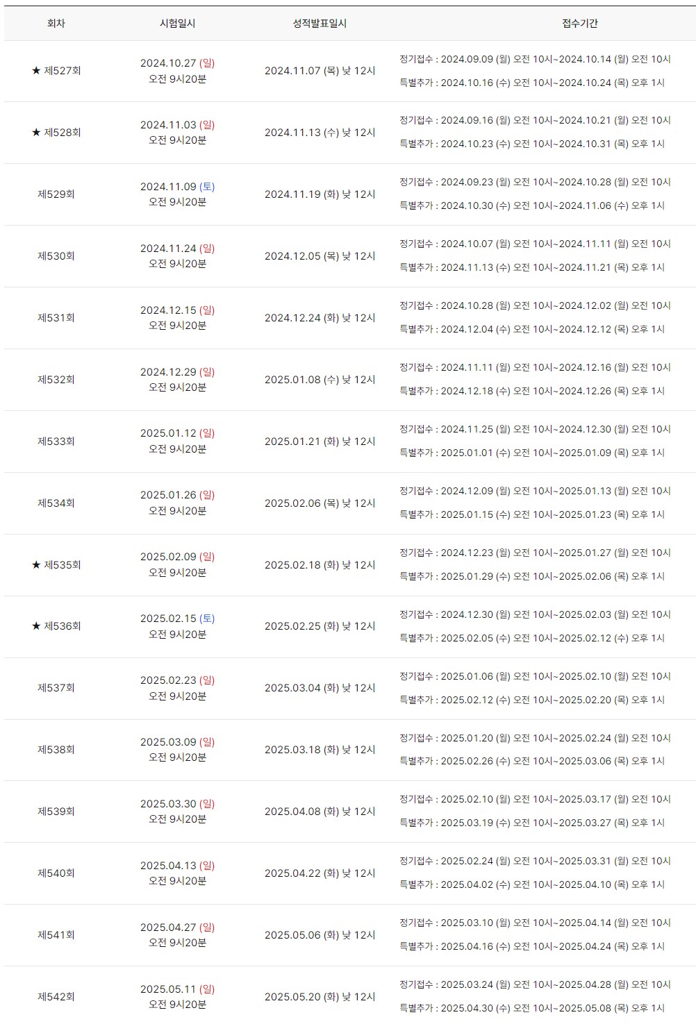 - 성수기(3-5월, 8-10월) 시험은 더욱 빠른 접수 필요